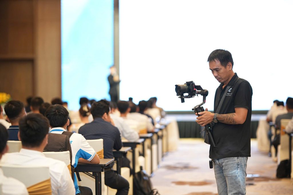 Sử dụng máy ảnh Full-frame, lens chuyên dụng, hỗ trợ flycam – quay video – livestream khi cần