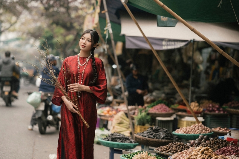 Hãy bước đi nhẹ nhàng, để tà áo dài bay trong gió, có thể cầm hoa hoặc phụ kiện. Điều này tạo ra cảm giác sống động, tự nhiên, thể hiện sự phóng khoáng và vui tươi trong những ngày Tết.